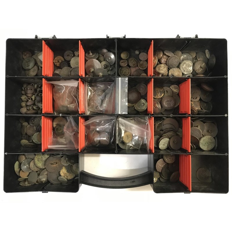A COLLECTION OF METAL DETECTION FINDS: BUTTONS. A large collection of buttons to include livery, regimental and others, metal detecting finds.
