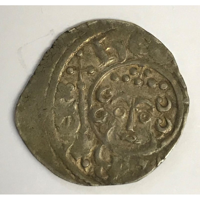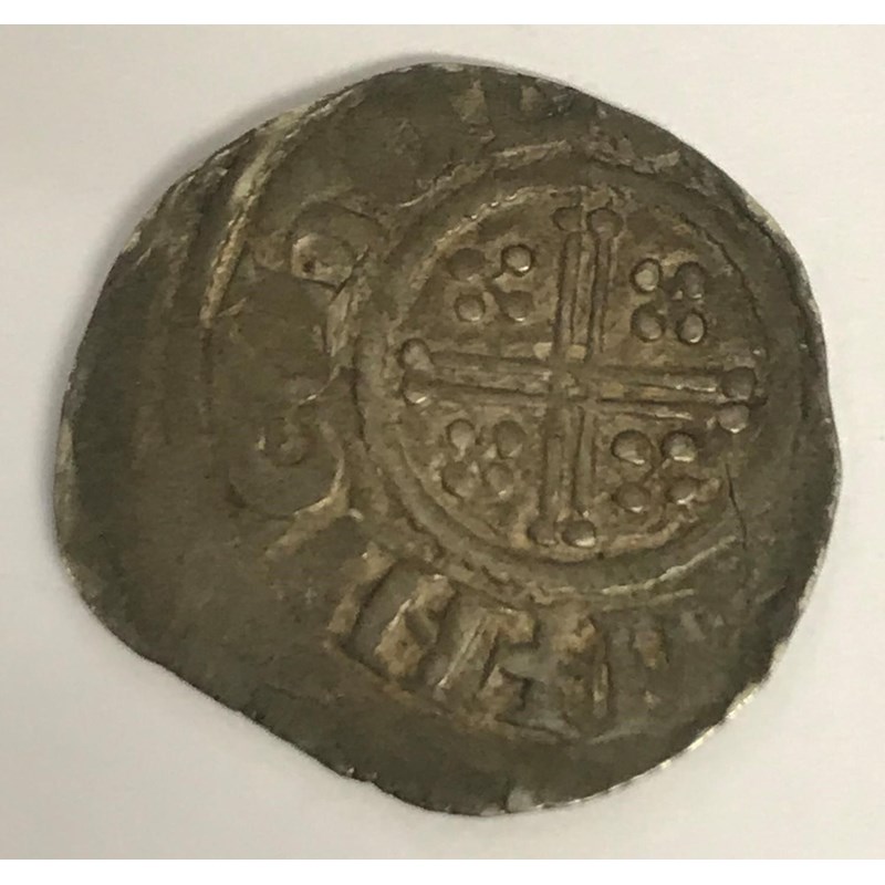 A KING JOHN SHORT CROSS COIN. A King John (1199-1216) hammered short cross coin, facing portrait with circular curls, 20mm wide (max), c.1.5g.