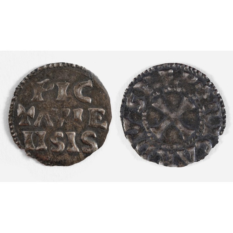 A RICHARD I ANGLO-GALLIC COIN. A Richard I (Richard the Lionheart king of England 1189-99) hammered Denier, Poitou, central short cross within legend Ricardus Rex, the reverse with Pic Tavie Hsis.