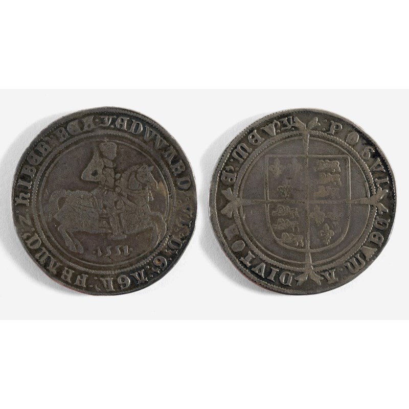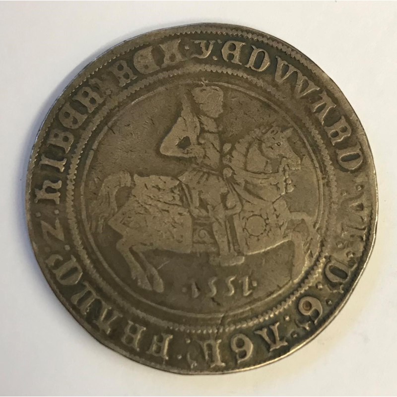 AN EDWARD VI CROWN. An Edward VI Crown, fine silver issue, the king on horseback right with date 1551 below, reverse with shield on a cross, mint mark y.