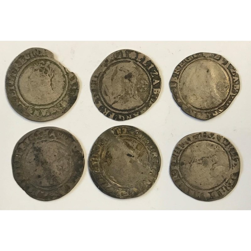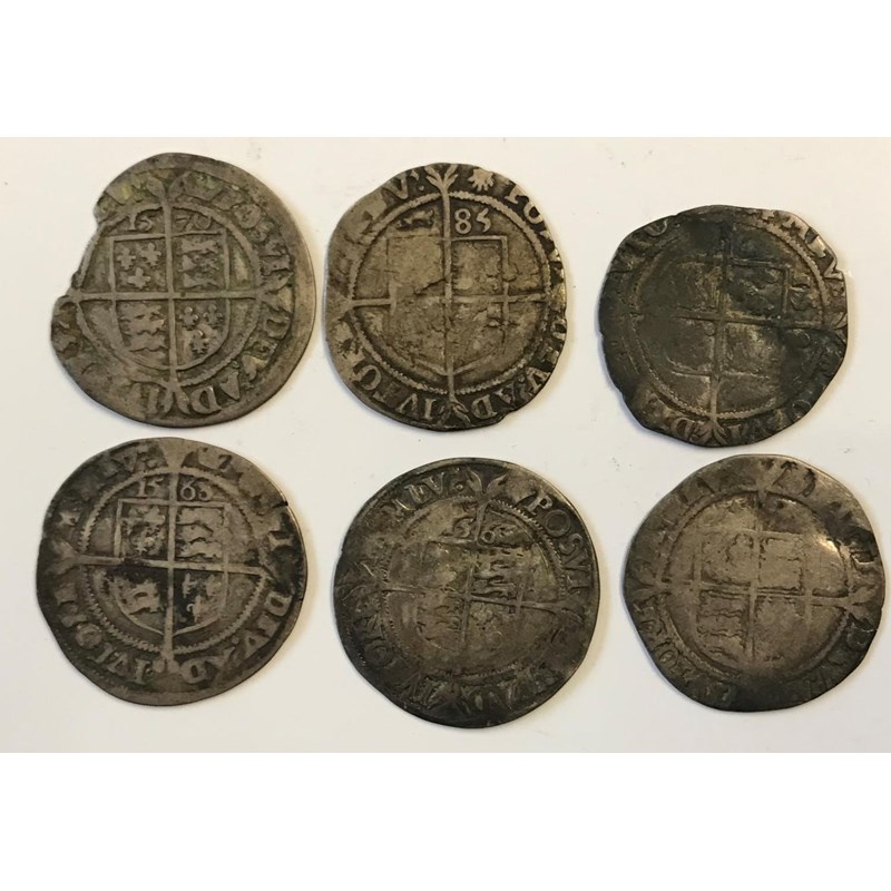 SIX ELIZABETH I SIXPENCE. Six Elizabeth I hammered silver Sixpence, all rose and date type. 6 coins.