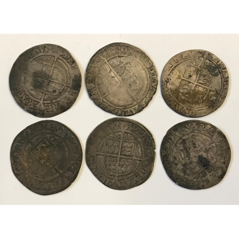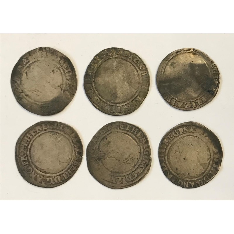 SIX ELIZABETH I SIXPENCE. Six Elizabeth I hammered silver Sixpence, all rose and date type. 6 coins.