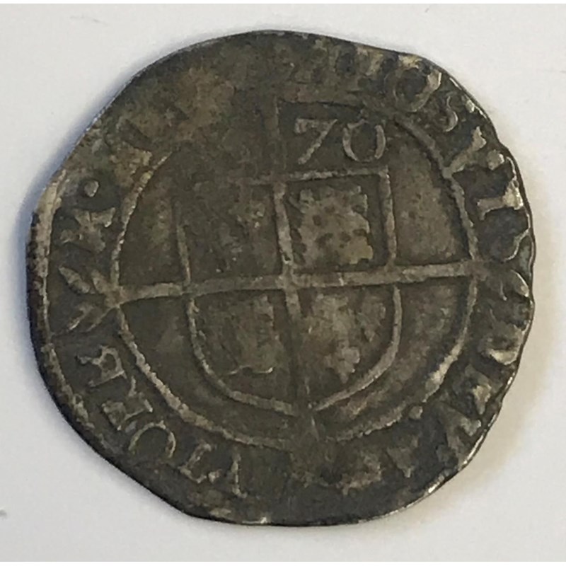 AN ELIZABETH I THREEPENCE. An Elizabeth I Threepence with rose behind bust l, and date 1570, mint mark obscured.