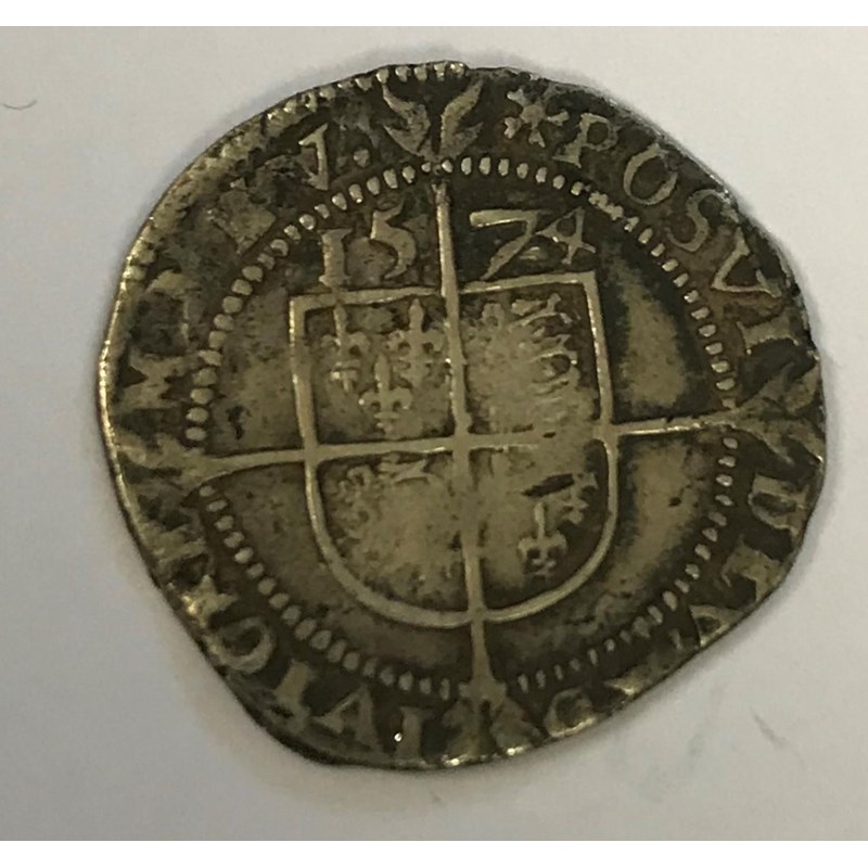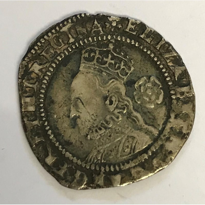 AN ELIZABETH I THREEPENCE. An Elizabeth I Threepence, crowned bust l with rose behind and dated 1574, mint mark probably eglantine for 1573-8.