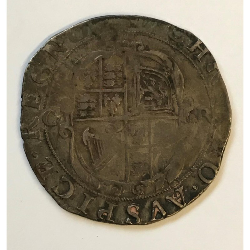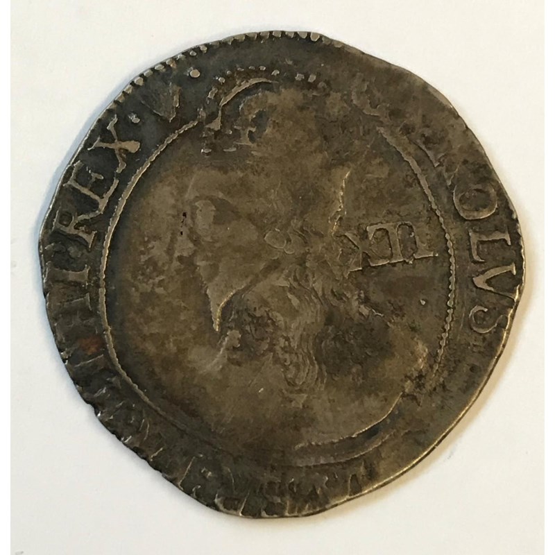 A Charles I hammered shilling, crowned bust with lace collar left, Tower mint under Charles I, mint mark harp for 132/3. 30mm wide, c6g.