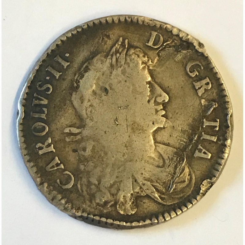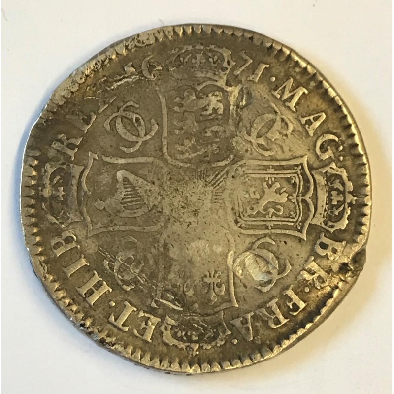 A CHARLES II HALFCROWN. A Charles II Halfcrown dated 1671, third bust r, reverse with conjoined Cs in angles. Regnal year V. Tertio to the edge,