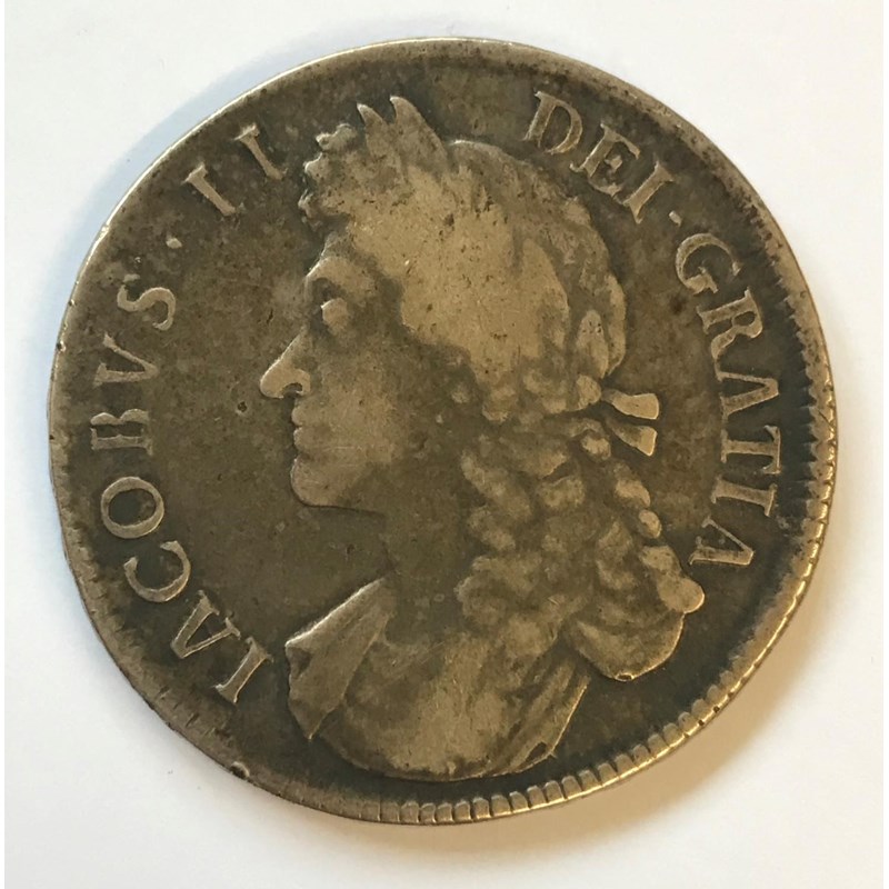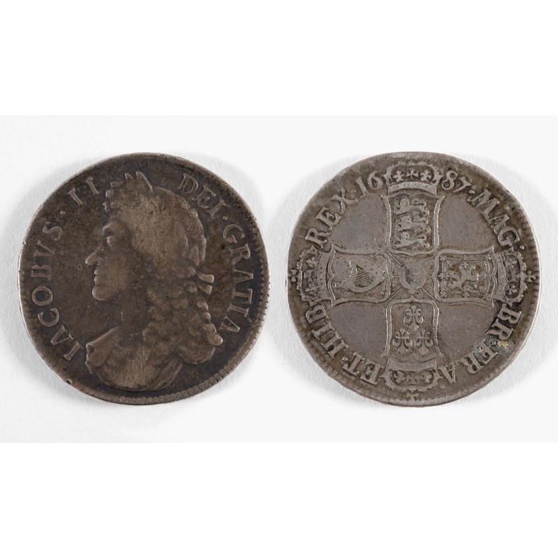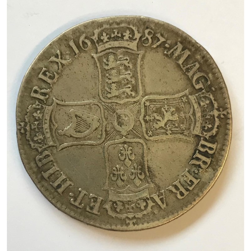 A JAMES II CROWN. A James II Crown dated 1687, second draped bust left. Regnal year Tertio to the rim.