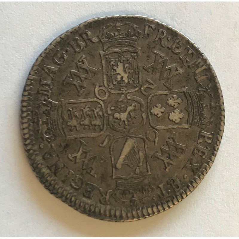 A WILLIAM AND MARY SHILLING. A William and Mary Shilling dated 1692, conjoined busts r, reverse crowned cruciform shields with WM monogram in angles.
