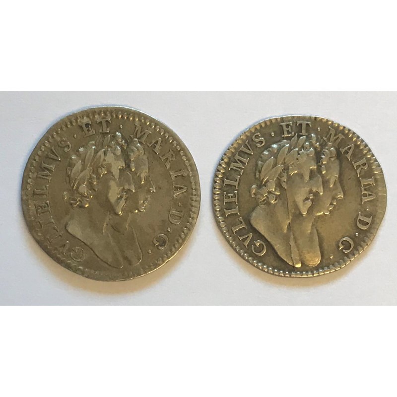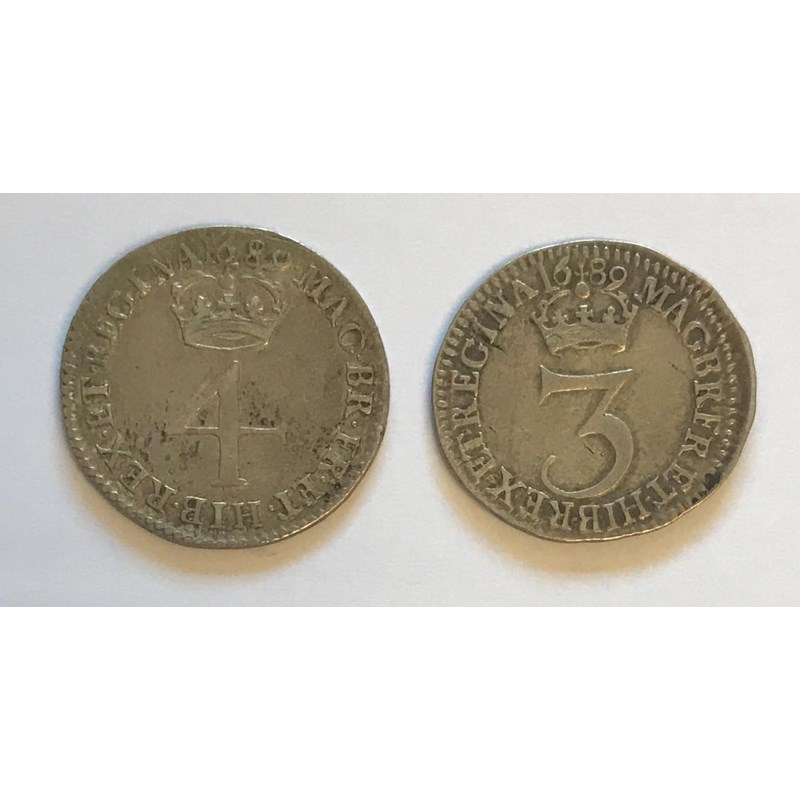 WILLIAM AND MARY MAUNDY MONEY. A William and Mary Groat dated 1689 and a similar 3d coin dated 1689, 2 coins.
