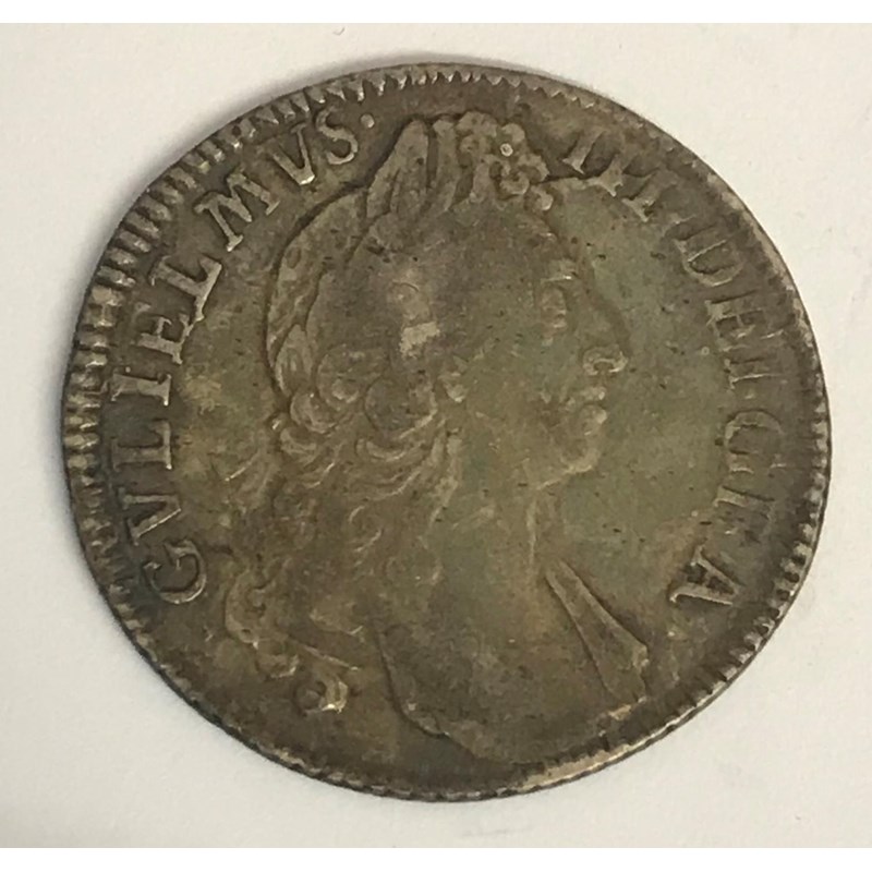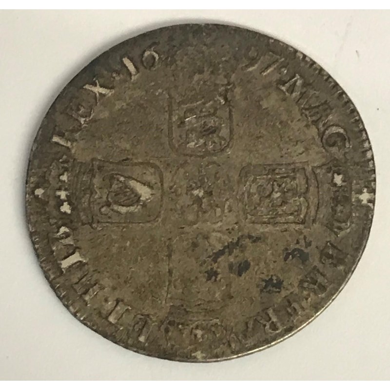A WILLIAM III SHILLING. A William III Shilling dated 1697, first draped bust r, reverse with crowned cruciform shields and plain angles.