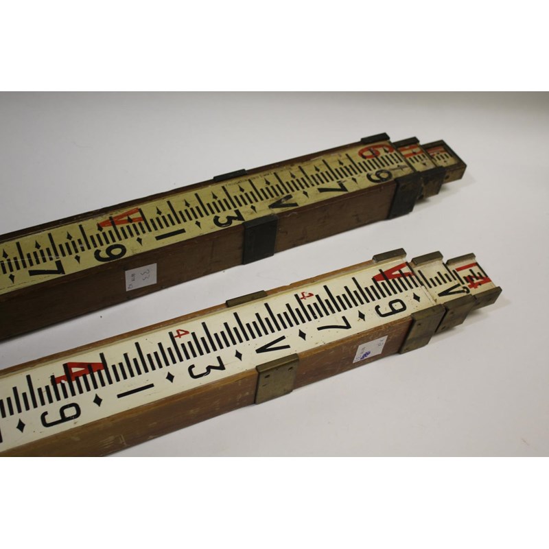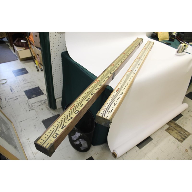 TWO LARGE SURVEYOR'S POLES including a large wooden and brass pole by Troughton & Simms, and a wooden and brass pole by Halbro. (2)