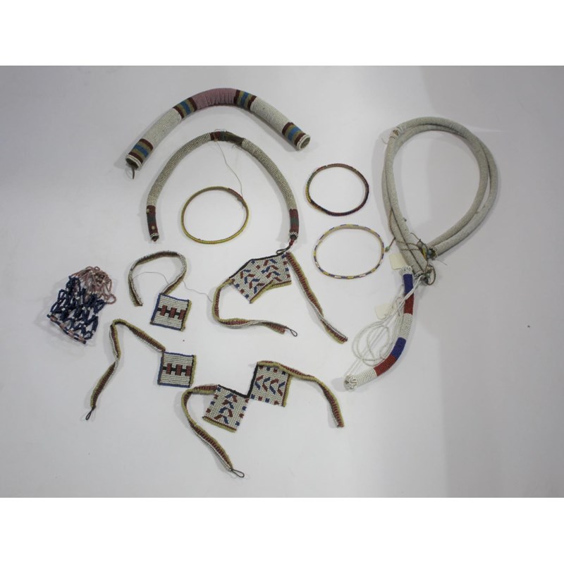 ZULU BEADS & BEADWORK a collection of Zulu beads and beadwork, including chokers, belts, friendship necklaces, gourd cover etc.