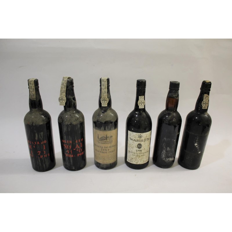 6 bottles including Warre's Quinta Da Cavadinha 1986, Quinta Do Noval 1982, 2 bottles of Quinta Do Noval 1970 (some lettering missing from bottles), and 2 other bottles (labels missing). (6)
