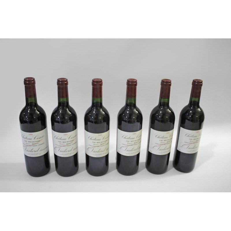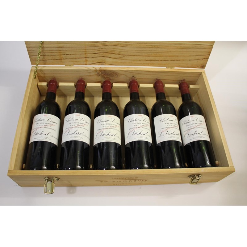 WINE - CHATEAU CISSAC 6 bottles of Chateau Cissac 1995, Cru Bourgeois Haut-Medoc, in a wooden case marked for Wakefield St Andrews. (6)