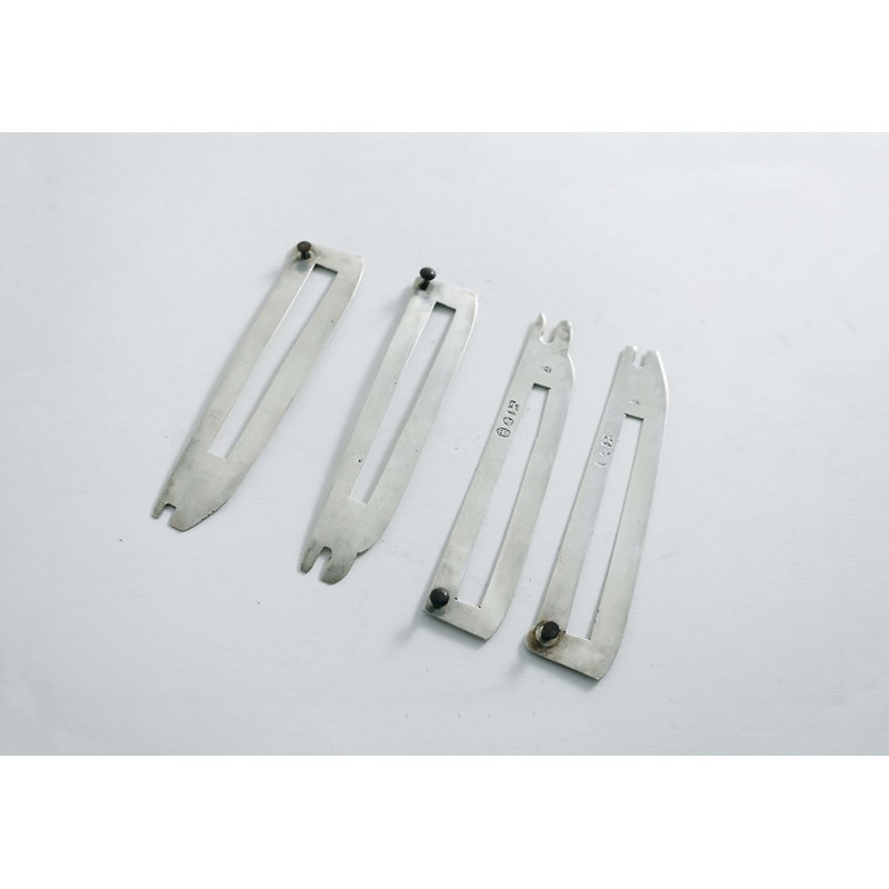 with notched ends, a pierced slot down their length and a mounting rivet at the end of one side, by Joseph Law, Sheffield 1814; 3.55" (9 cms) long; 0.9 oz (4)