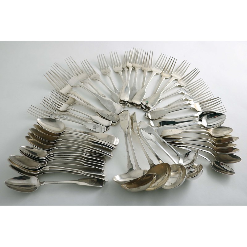 A QUANTITY OF ASSORTED IRISH FIDDLE PATTERN TO INCLUDE:-