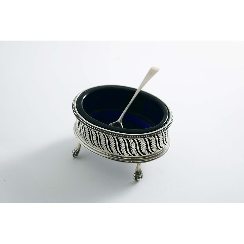 on ball & claw feet, Sheffield 1778 and a Scottish salt shovel by Alexander Gairdner, Edinburgh c.1775 (maker's mark only); the salt 3.25" (8.4 cms) long; 1.7 oz weighable silver (2)