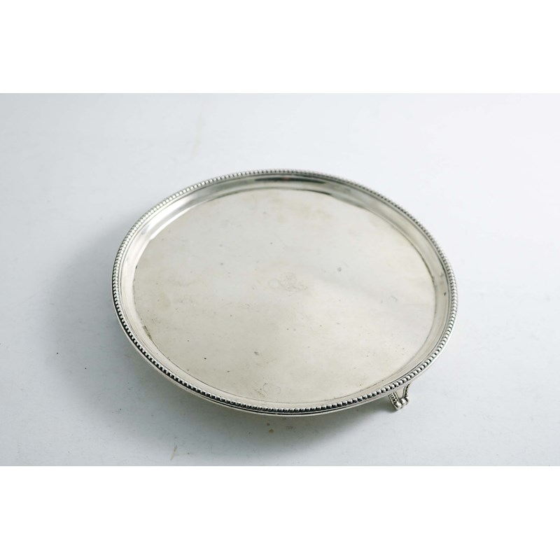 with a beaded border and beaded bracket feet, crested, by Peter, Anne and William Bateman, London 1801; 8" (20.5 cms) diameter; 11.6 oz