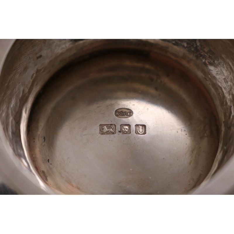 on a domed foot with an undulating rolled-over rim, and a hammered finish, by the Central School of Arts & Crafts, London 1955; 6.4" (16.2 cms) diameter; 8.1 oz