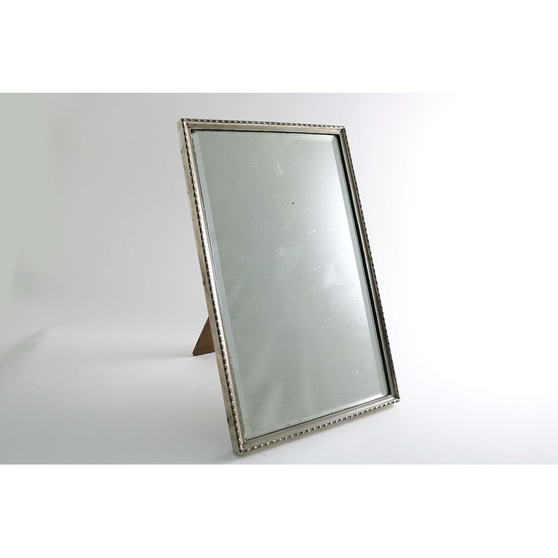 AN EARLY 20TH CENTURY RECTANGULAR MIRROR FRAME with a bobbin border and a wooden easel back, by Walker & Hall, Sheffield 1931; 12.75" (32.4 cms) high