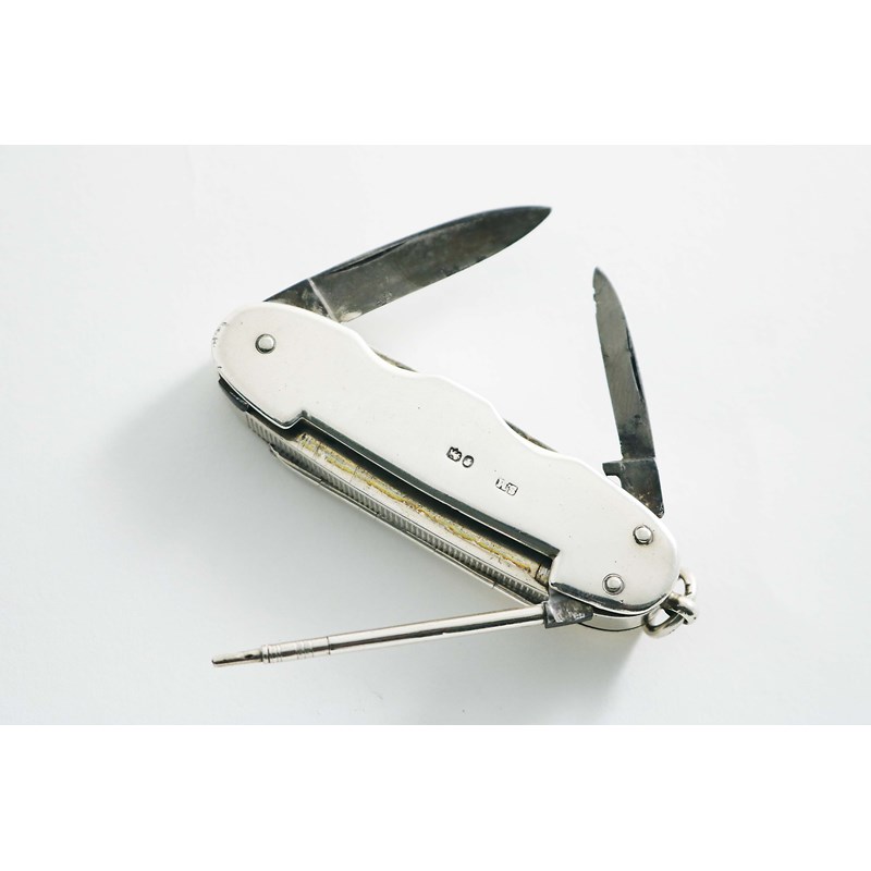 A VICTORIAN COMBINED VESTA CASE penknife and pencil combined, oval with a suspensory ring at one end, two steel blades and a fold-out propelling pencil, by Sampson Mordan, London 1882; 2.8" (7.3 cms) long; 1.7 oz gross