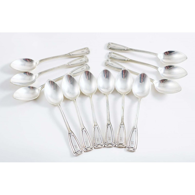 A SET OF TWELVE EARLY 20TH CENTURY AMERICAN COFFEE SPOONS initialled "h", by Tiffany & Co.; 6.8 oz (12)