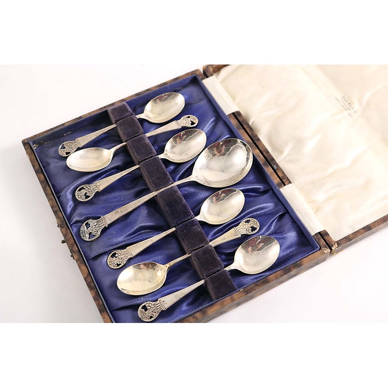 A CASED SET OF SIX HANDMADE TEA SPOONS
