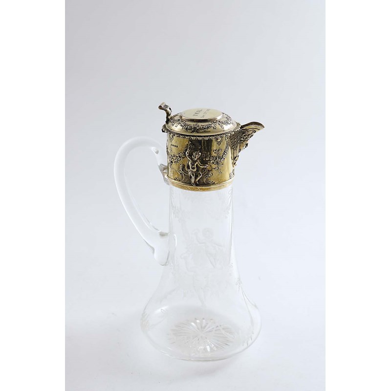 A VICTORIAN SILVERGILT MOUNTED CLEAR GLASS CLARET JUG