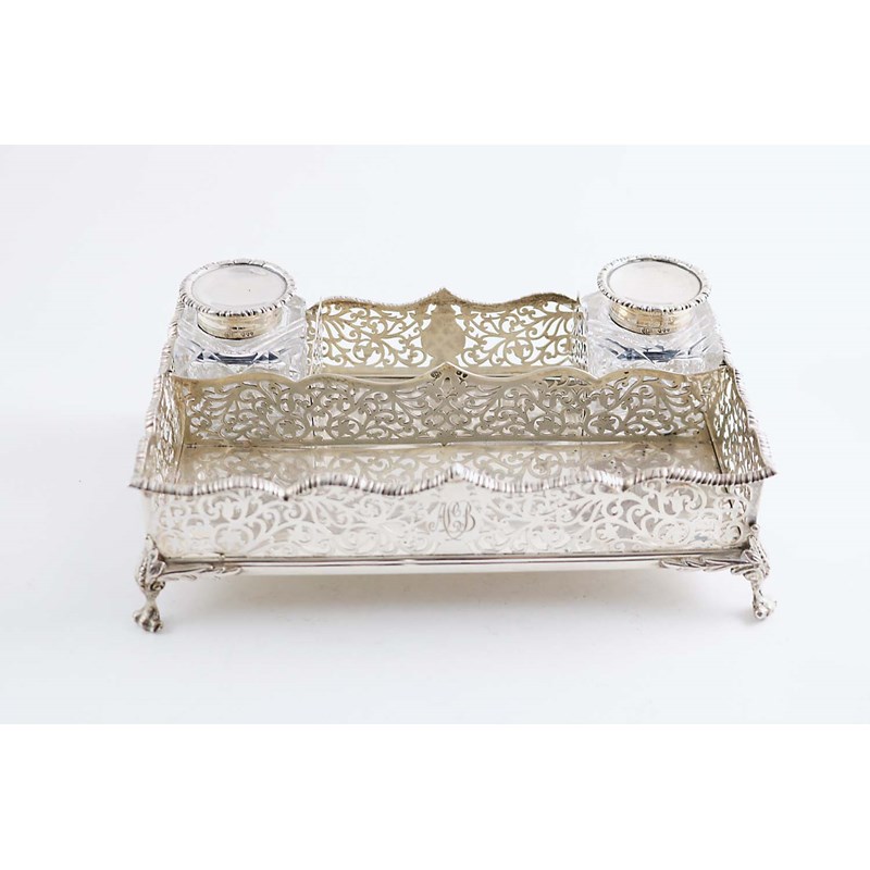 A LATE VICTORIAN PIERCED GALLERY INKSTAND