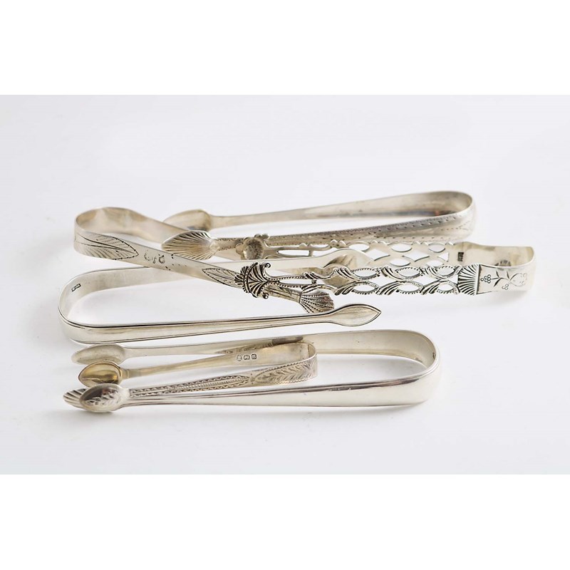 SIX ASSORTED PAIRS OF SUGAR TONGS (including two Irish pairs and an Italian pair); 6.4 oz (6)