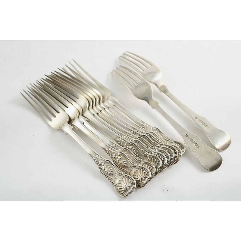A SET OF TWELVE VICTORIAN NORTH COUNTRY PROVINCIAL DESSERT FORKS, King's pattern (single struck with shoulders), initialled, by John Wright, Newcastle 1865; 17.5 oz (12)