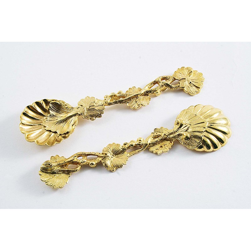A PAIR OF VICTORIAN SILVERGILT NATURALISTIC SALT SPOONS