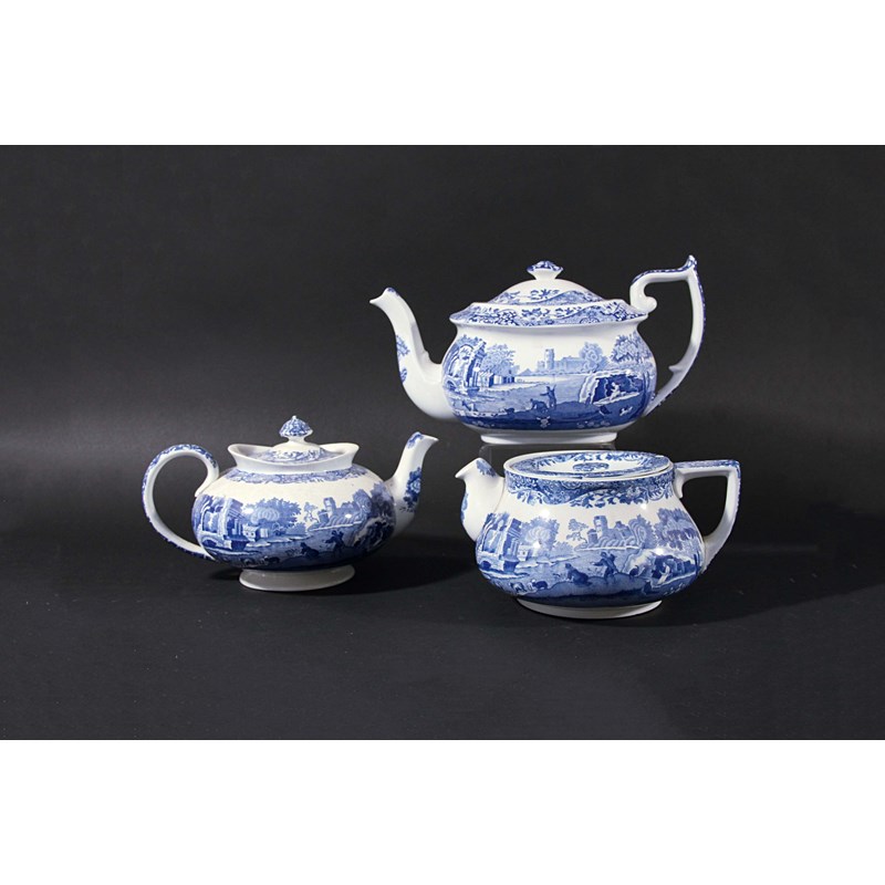 COLLECTION OF SPODE BLUE ITALIAN TEAPOTS AND COVERS, including helmet, oval and circular examples (11)