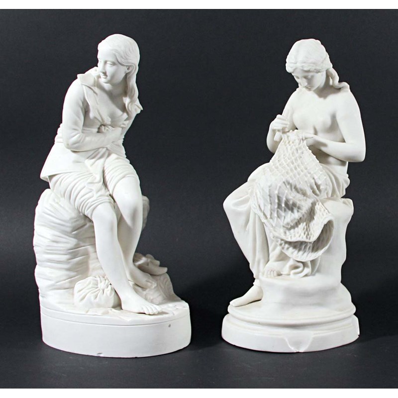 DOROTHEA, a Minton parian figure by John Bell, unmarked, height 30cm; together with another of a classical maiden repairing nets, height 31cm (2)