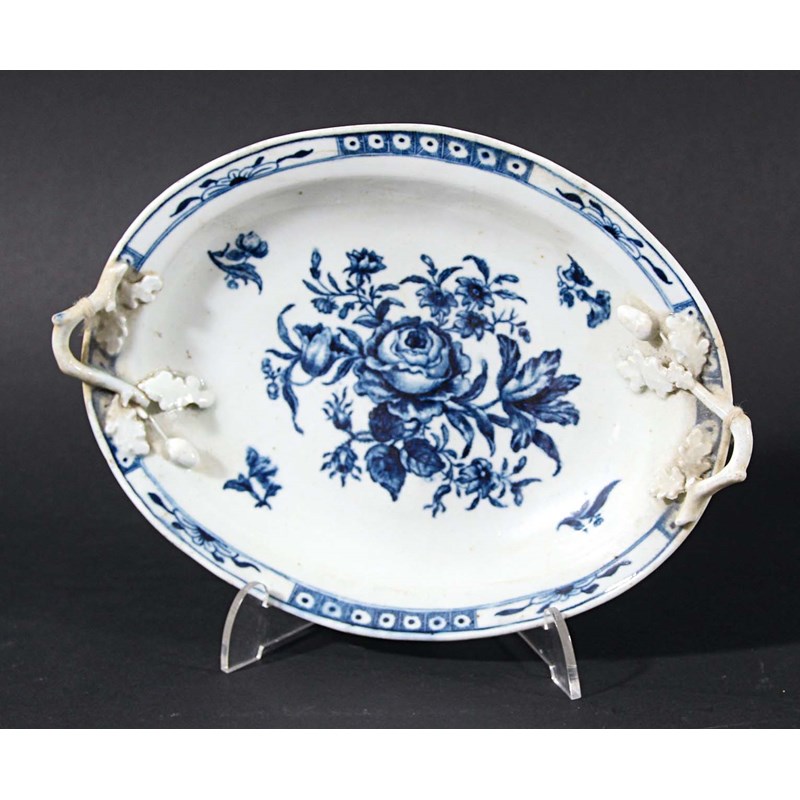 WORCESTER BLUE PRINTED TWO HANDLED DISH,