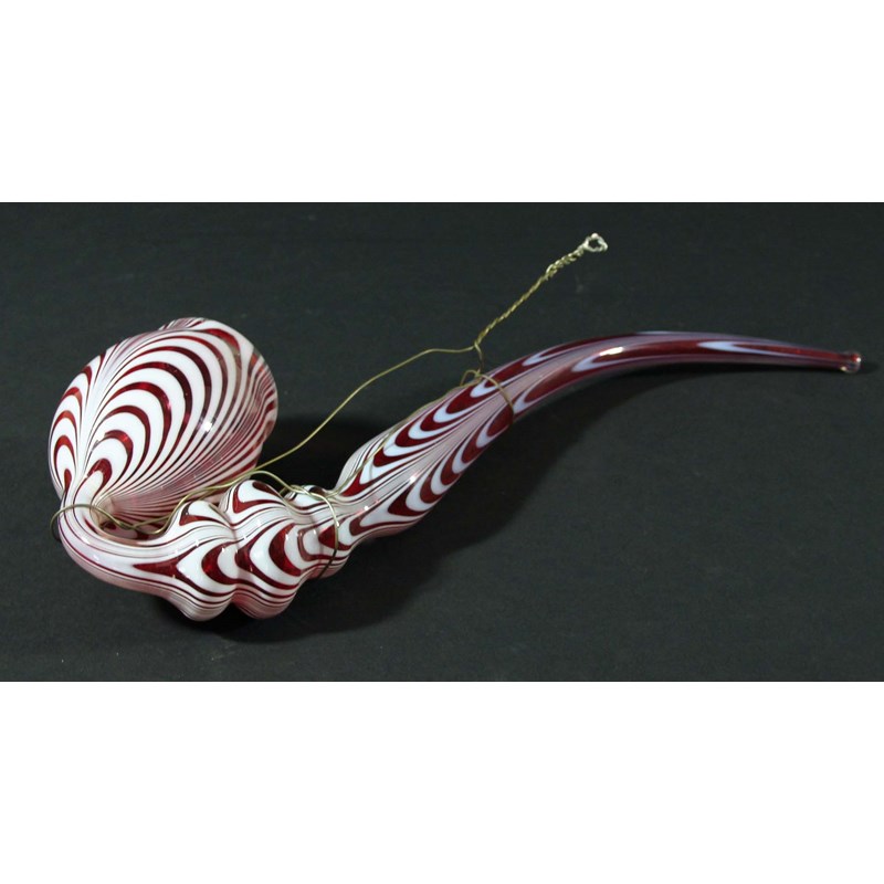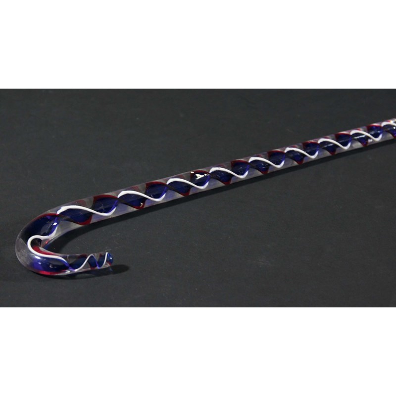 with red and white striations, height 39cm; together with a Nailsea walking stick with a red, white and blue barleytwist, length 103cm (2)