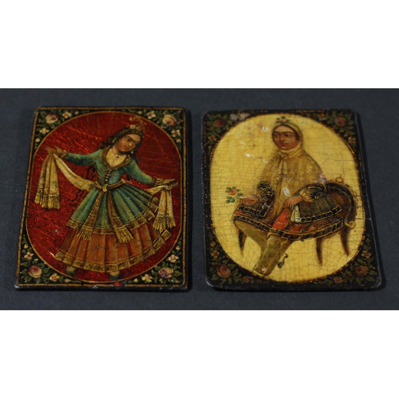SET OF THREE PERSIAN AS NAS PLAYING CARDS, 19th century, painted, lacquered and gilt decoration of ladies in oval cartouches, each 5.7cm x 4cm (3)