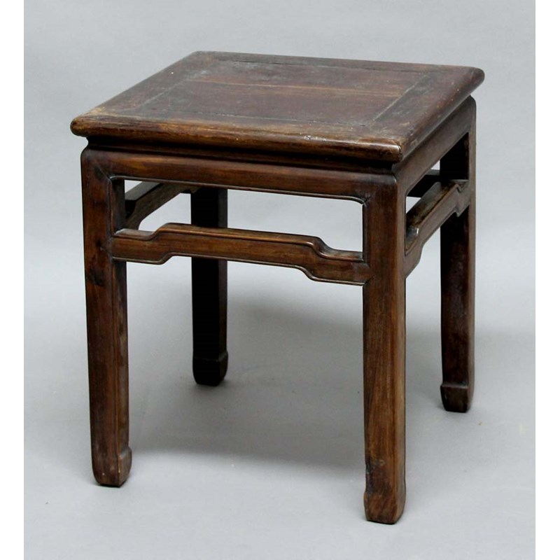 CHINESE HARDWOOD SIDE TABLE, the square top above shaped stretchers, height 53cm, width 45cm, depth 45cm