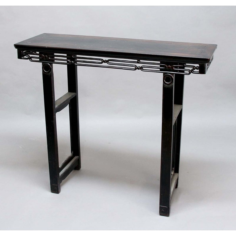 the rectangular top above a pierced frieze and legs with low relief carved decoration, height 105cm, width 125cm, depth 43cm