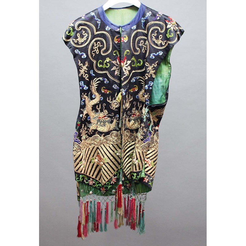 CHINESE EMBROIDERED SILK OVER GARMENT OR WAISTCOAT,