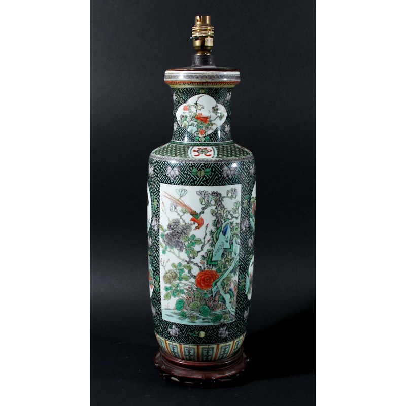 CHINESE FAMILLE VERTE ROULEAU VASE,