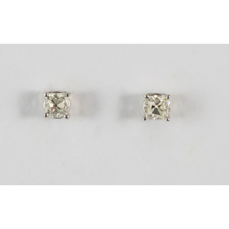 A PAIR OF DIAMOND STUD EARRINGS the cushion-shaped diamonds weighing approximately 0.78 carats and 0.80 carats and are set in 18ct. white gold.