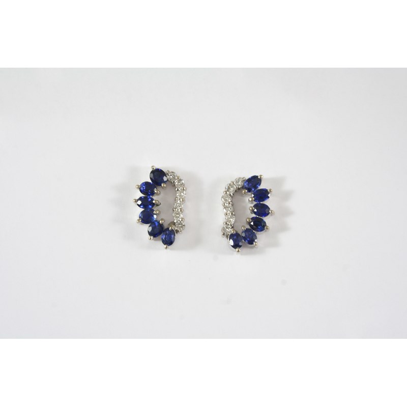 of openwork design, each set with six oval-shaped sapphires and six circular-cut diamonds, in white gold, 2cm. long.