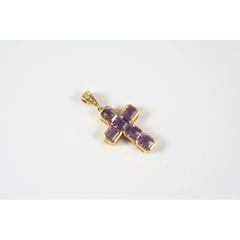 AN AMETHYST AND DIAMOND CRUCIFORM PENDANT