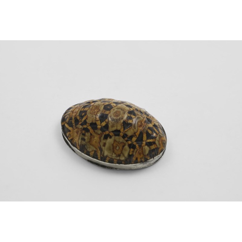 A LATE 18TH CENTURY MOUNTED TERRAPIN SHELL SNUFF BOX