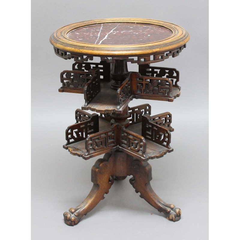 CHINESE HARDWOOD AND MARBLE MOUNTED REVOLVING BOOK TABLE,