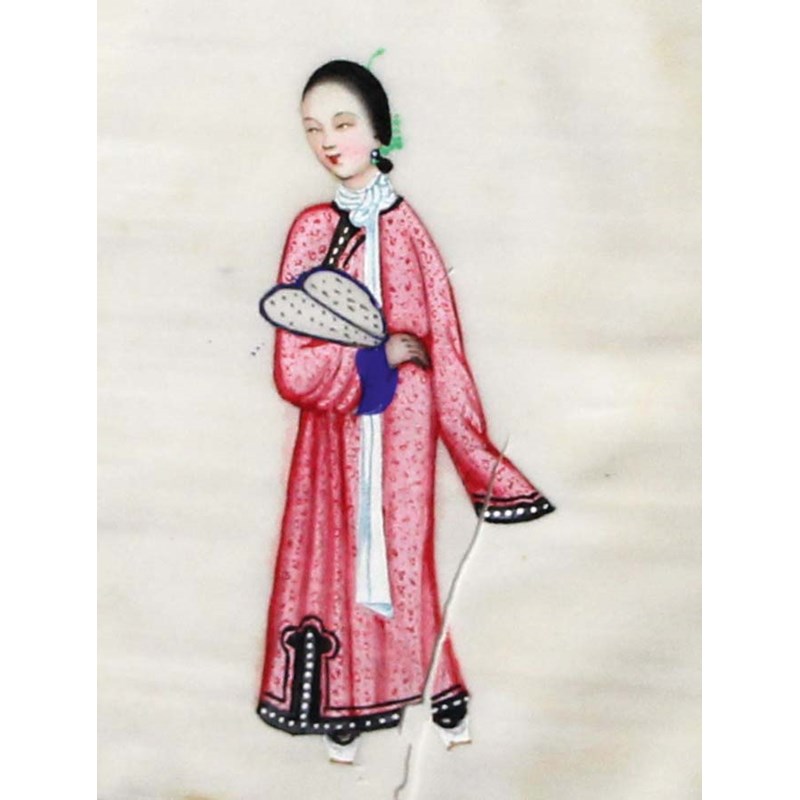 BOUND SET OF TWELVE CHINESE RICE OR PITH PAPER PAINTINGS,