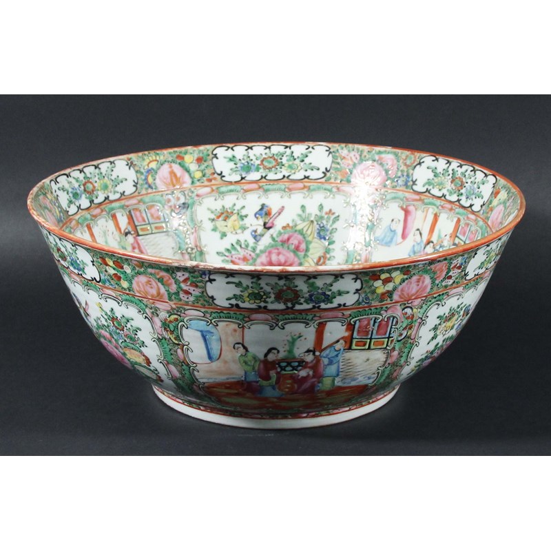 CHINESE FAMILLE ROSE PUNCH BOWL, 20th century, enamelled with figural and floral cartouches, iron red printed mark, diameter 34cm