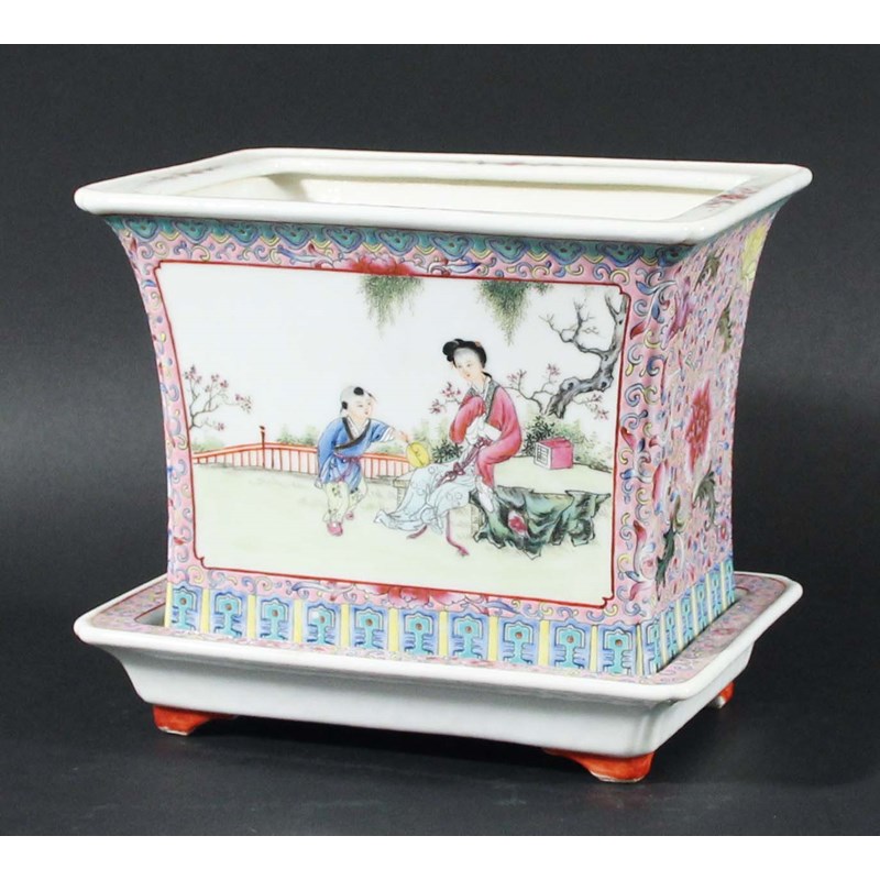 CHINESE FAMILLE ROSE JARDINIERE AND STAND,