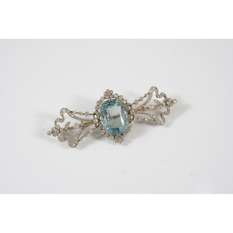 A BELLE EPOQUE AQUAMARINE AND DIAMOND BROOCH